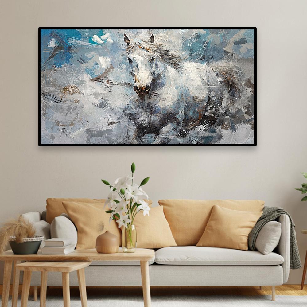 يتم طباعة اللوحة على قماش الكانفاس بأحدث وأفضل التقنيات، وتكون ممدودة بإحكام فوق إطارات خشبية عريضة، مما يضمن أن الكانفاس مشدود وغير متعرج.