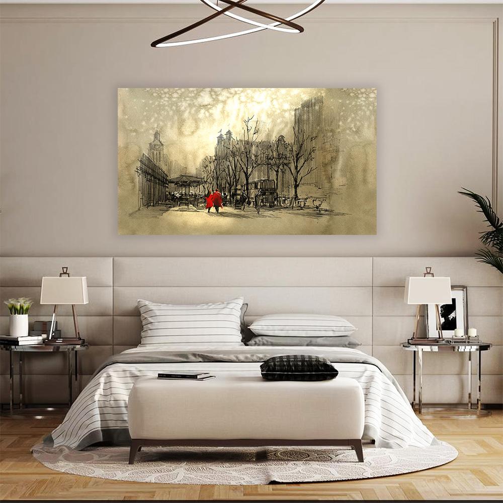 يتم طباعة اللوحة على قماش الكانفاس بأحدث وأفضل التقنيات، وتكون ممدودة بإحكام فوق إطارات خشبية عريضة، مما يضمن أن الكانفاس مشدود وغير متعرج.