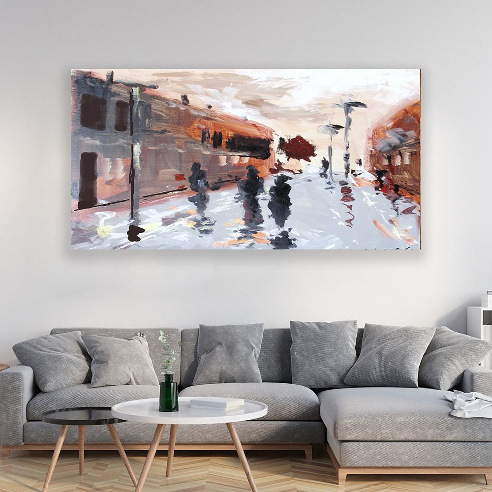 يتم طباعة اللوحة على قماش الكانفاس بأحدث وأفضل التقنيات، وتكون ممدودة بإحكام فوق إطارات خشبية عريضة، مما يضمن أن الكانفاس مشدود وغير متعرج.