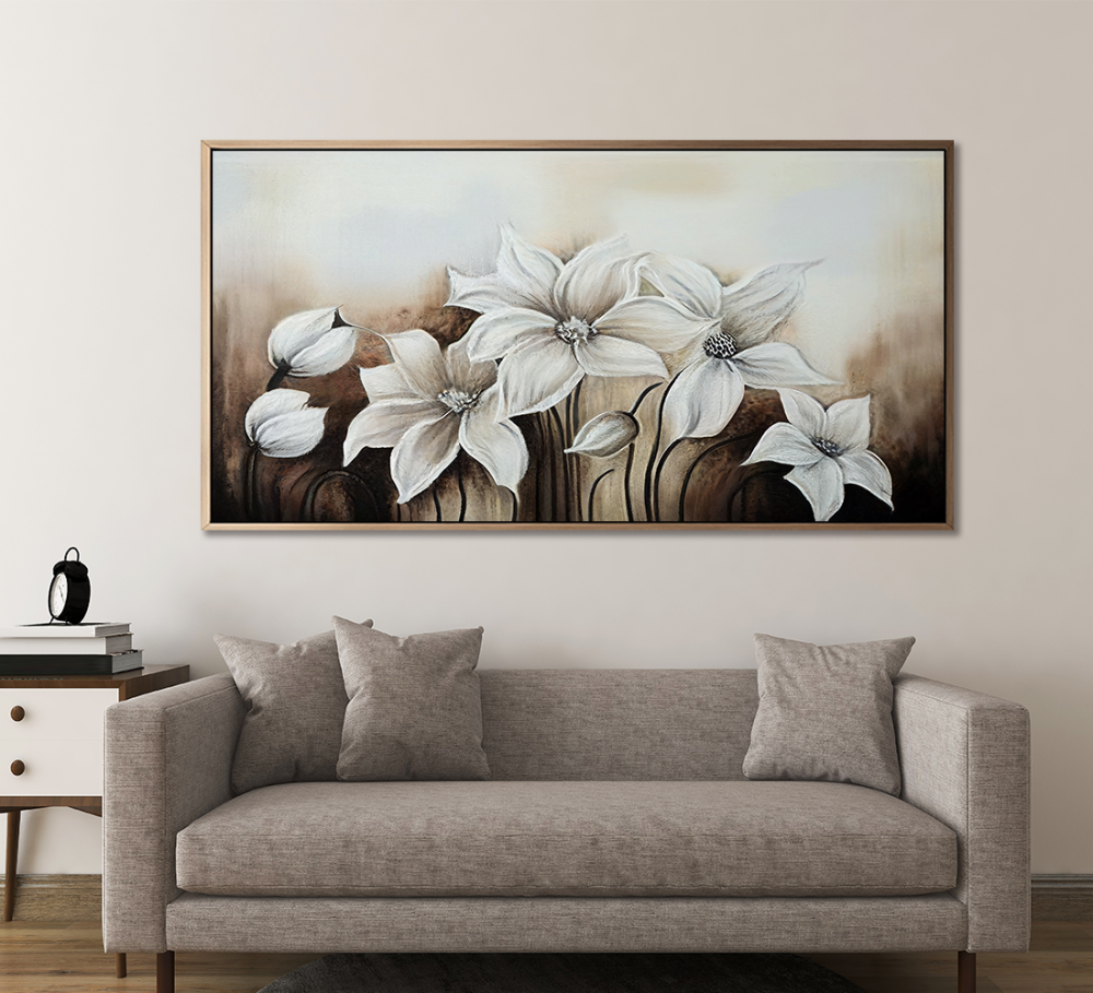 يتم طباعة اللوحة على قماش الكانفاس بأحدث وأفضل التقنيات، وتكون ممدودة بإحكام فوق إطارات خشبية عريضة، مما يضمن أن الكانفاس مشدود وغير متعرج.